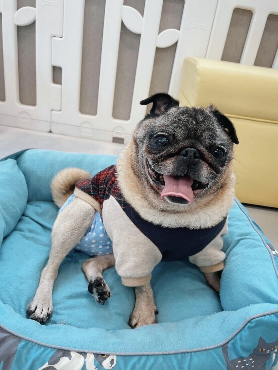 甘えん坊でのんびり屋さんな性格の、パグのなげわちゃん。